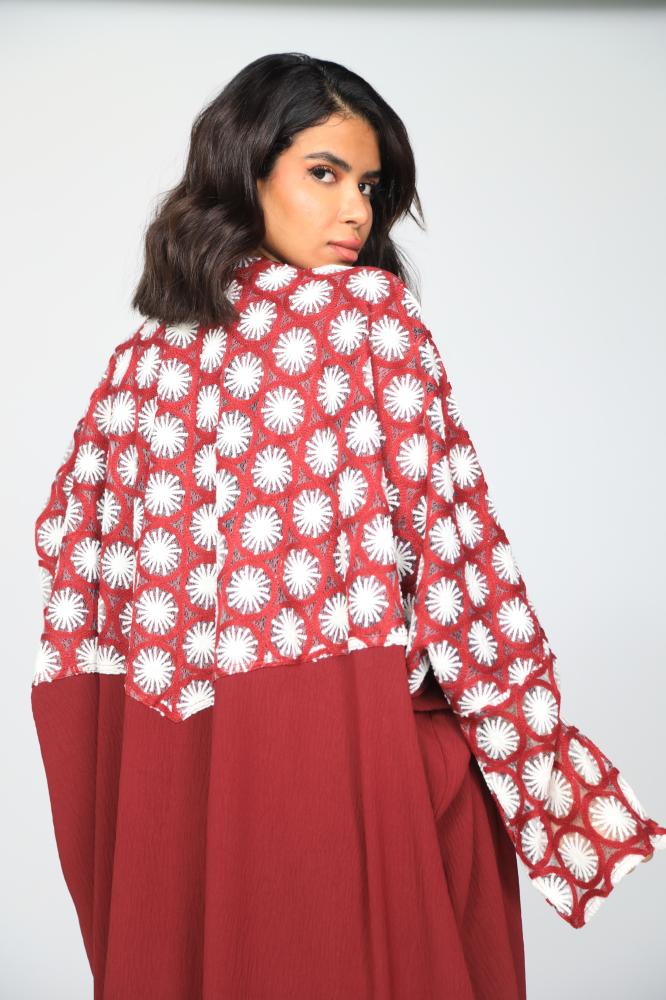 تألقي بإطلالة ساحرة مع هذه العباية الأنيقة المصنوعة من قماش الكريب العودي، التي تتميز بإضافة قماش التل المطروز الأبيض في الخلف، مما يضفي لمسة من الفخامة والجمال.