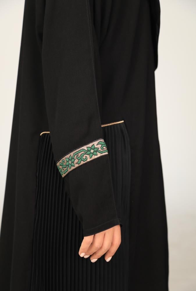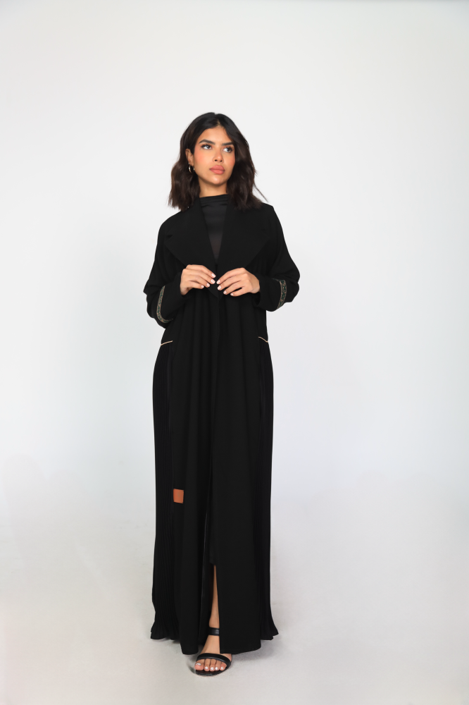 تألقي بإطلالة فريدة مع هذه العباية الأنيقة المصنوعة من قماش الكريب الملكي، التي تجمع بين الفخامة والأناقة في تصميم رائع.